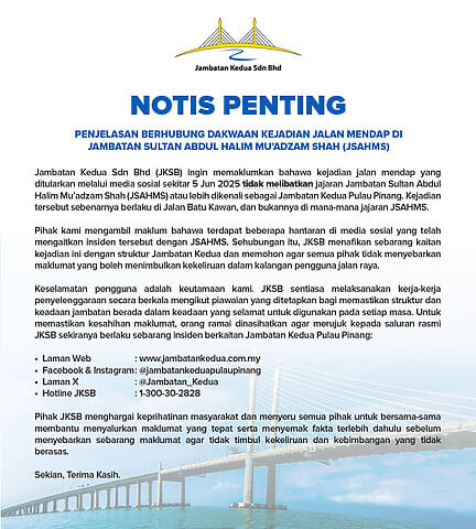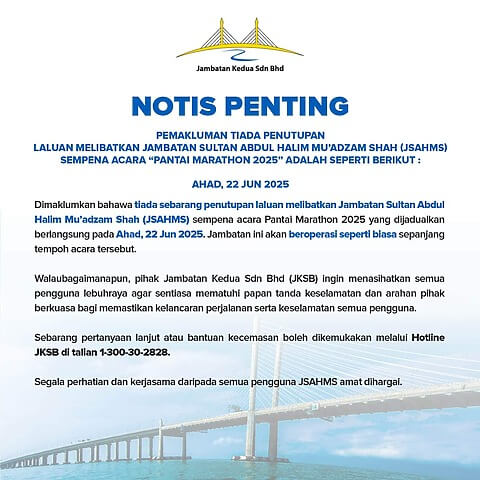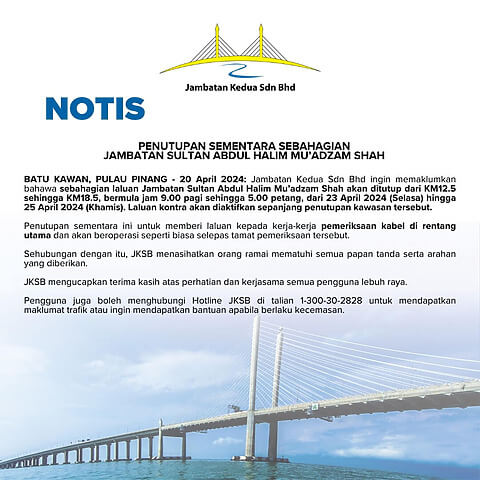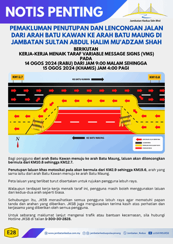 Makluman terkini mengenai acara, penutupan jambatan, sekatan lorong dan kerja penyelenggaraan.