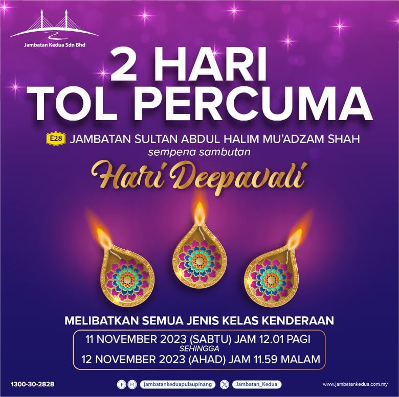 2 Hari Tol Percuma Sempena Sambutan Hari Deepavali!