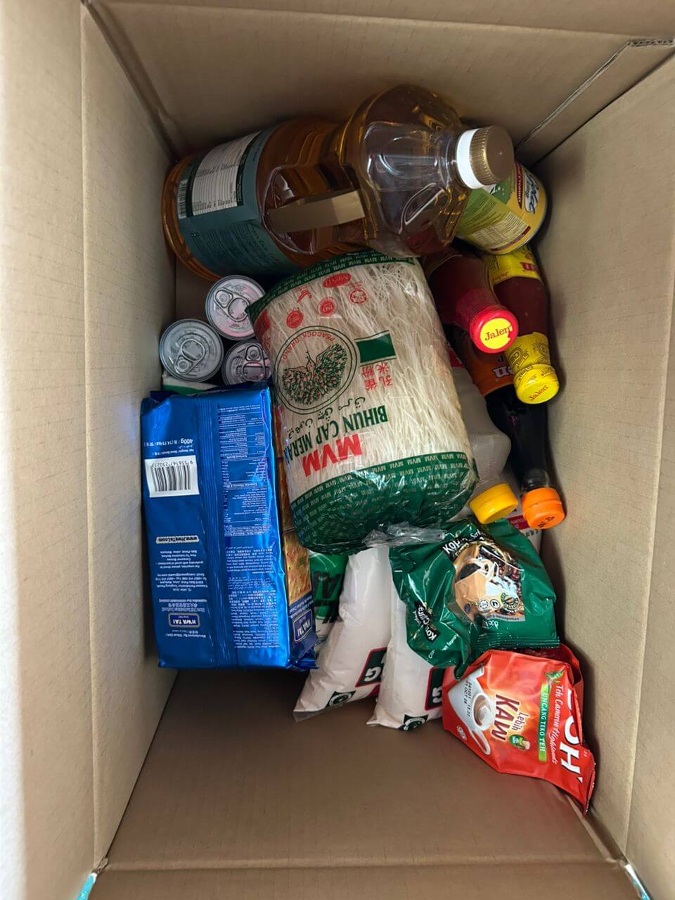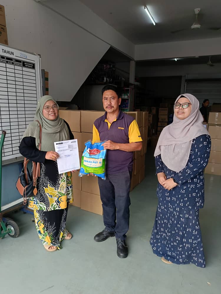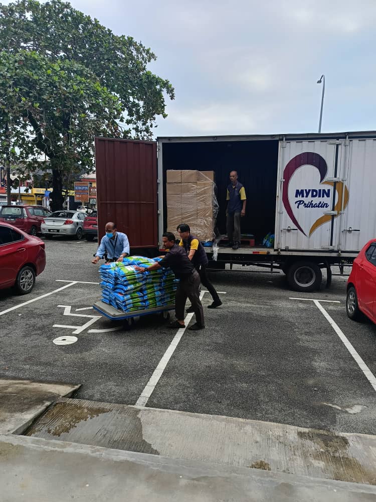 sardin dalam tin, biskut kering, dan tepung gandum telah diedarkan kepada mangsa banjir yang memerlukan. Barangan ini dibeli melalui pasar raya Mydin di setiap daerah dan negeri yang terlibat.