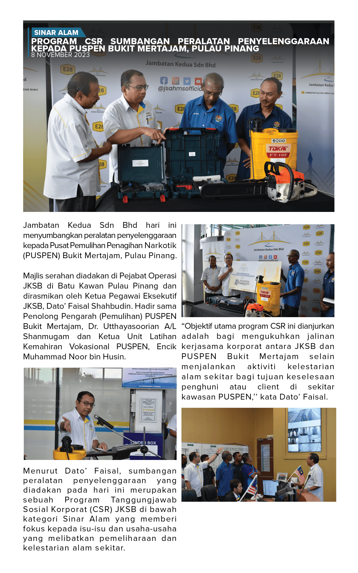 Program CSR Sumbangan Peralatan Penyelenggaraan Kepada Puspen Bukit Mertajam, Pulau Pinang