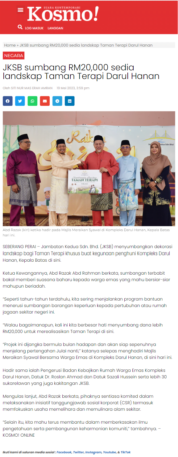 JKSB sumbang RM20,000 sedia landskap Taman Terapi Darul Hanan