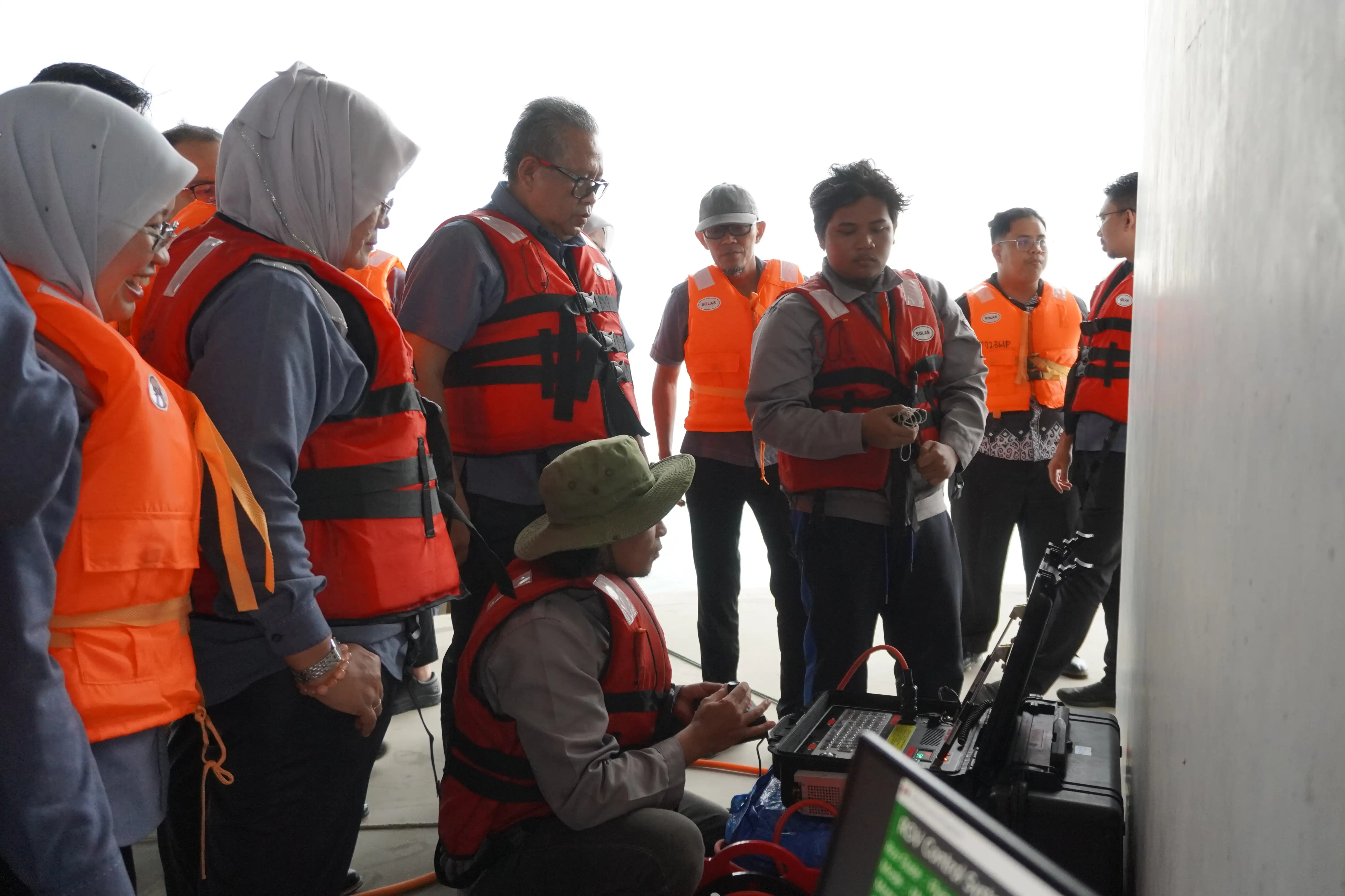 Selepas sesi tersebut, delegasi MBJ LLM telah mengadakan lawatan tapak dengan menaiki bot ke tiang ke-100 untuk meninjau secara langsung kerja-kerja pemeriksaan struktur bawah laut (underwater inspection) di JSAHMS. Pemeriksaan ini dijalankan oleh pakar struktur menggunakan kaedah Remotely Operated Vehicle (ROV), yang membolehkan analisis terperinci dan menyeluruh terhadap integriti struktur di bawah permukaan air.