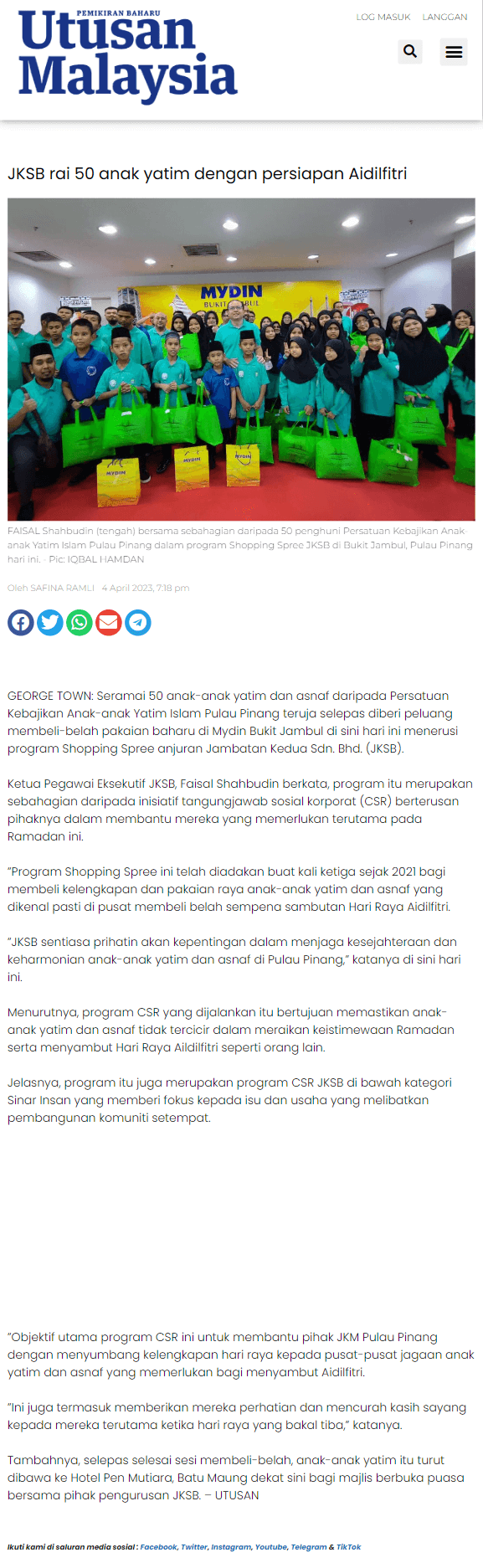 JKSB rai 50 anak yatim dengan persiapan Aidilfitri