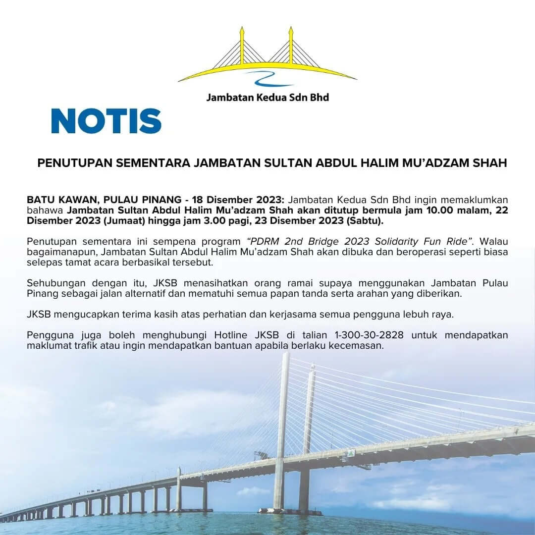 Penutupan Sementara Jambatan Sultan Abdul Halim Mu’adzam Shah