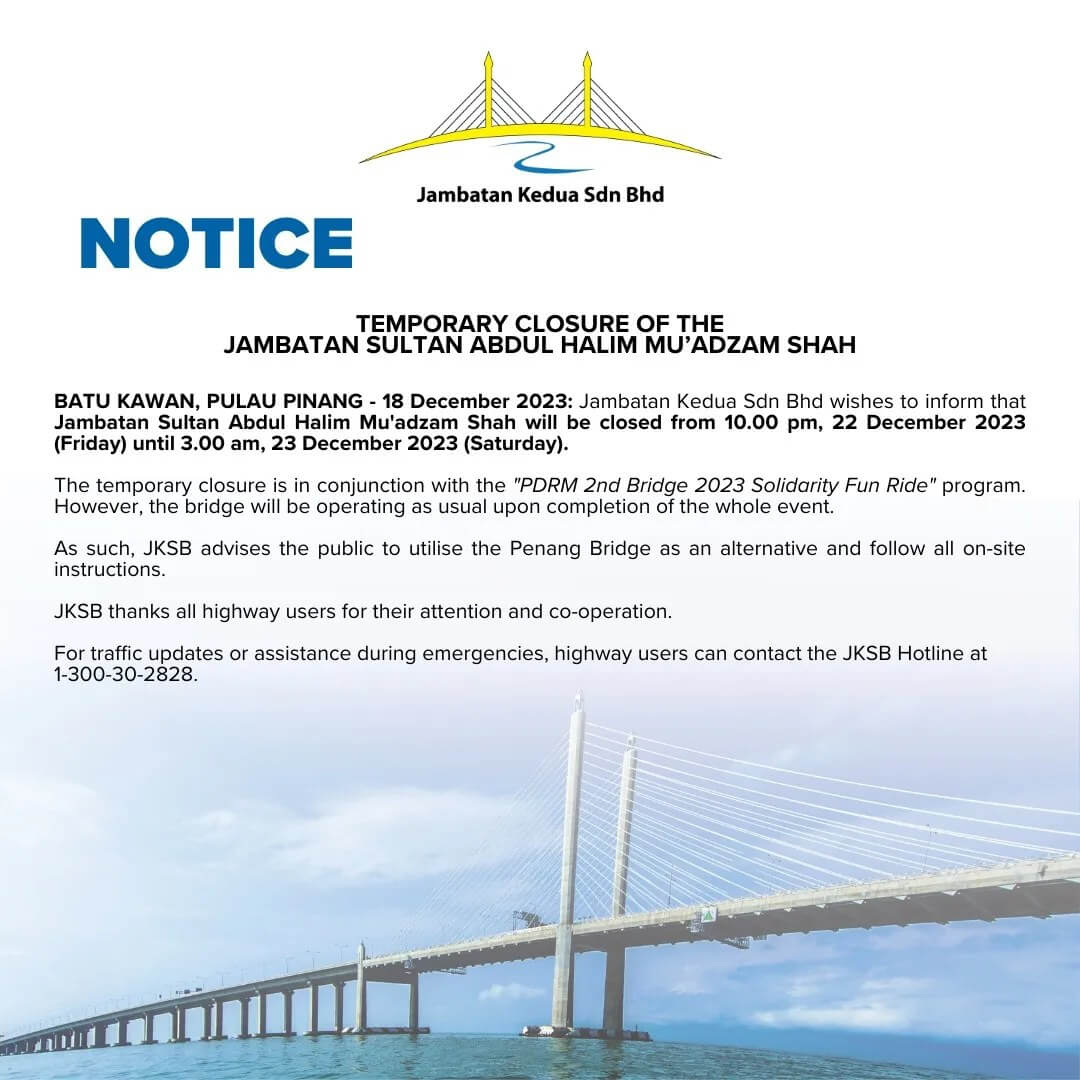 Penutupan Sementara Jambatan Sultan Abdul Halim Mu’adzam Shah